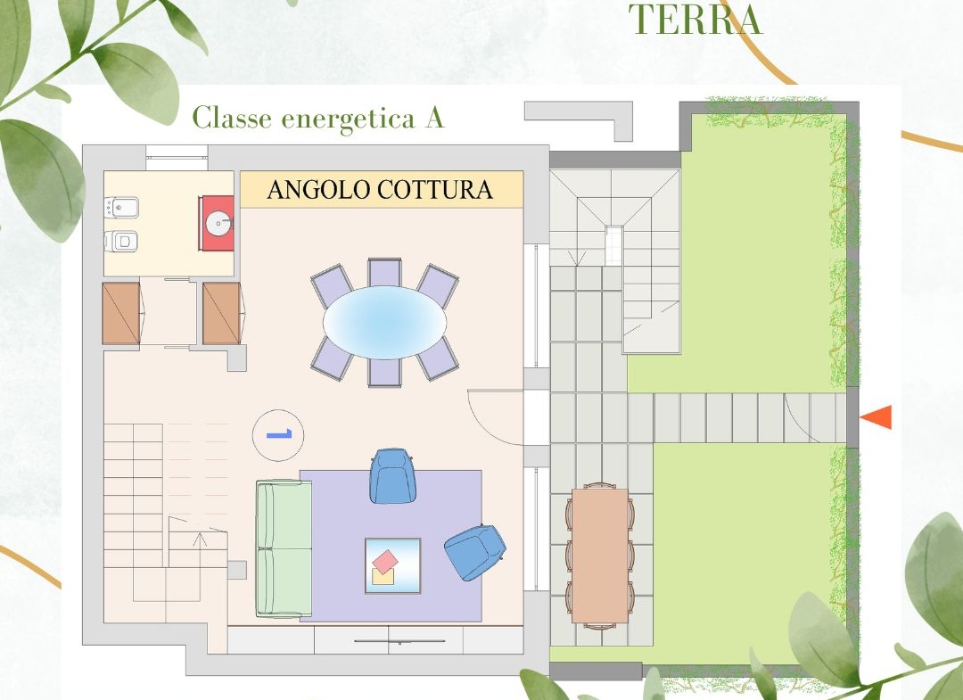 In nuovo contesto Appartamento di Testa con giardino di due piani fuori terra; Il piano terra è composto da un luminoso soggiorno con angolo cottura, servizio finestrato con antibagno; Il piano primo è composto da due camere matrimoniali, servizio finestrato con doccia, ripostiglio, terrazzo abitabile.